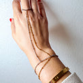 La Soleil Hand Chain destaca con sus delicadas bolitas decorativas, añadiendo textura y brillo a tu mano. Una pieza moderna y femenina que se convierte en protagonista instantánea de cualquier outfit.