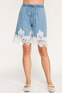 Lace Trim Denim Shorts