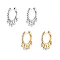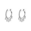Eleva tu estilo con estas delicadas argollas brillantes, diseñadas con una fila de zirconias que añaden luz y movimiento con cada paso. Su caída de mini charms redondos crea un efecto elegante y femenino — perfectas para usar solas o en combinación con otros aretes.